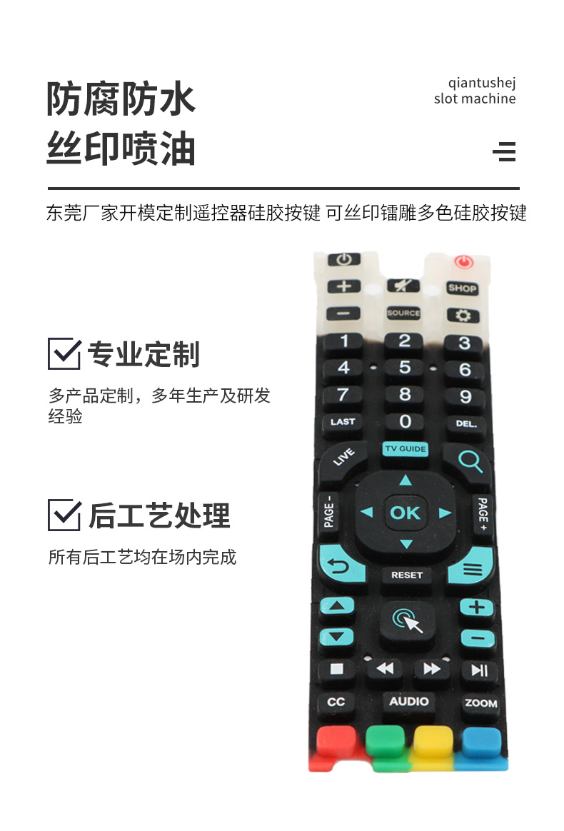 簡(jiǎn)介:奧博硅膠按鍵,耐磨性好,工廠內(nèi)部完成成型、噴油、鐳雕、絲印等后工序。